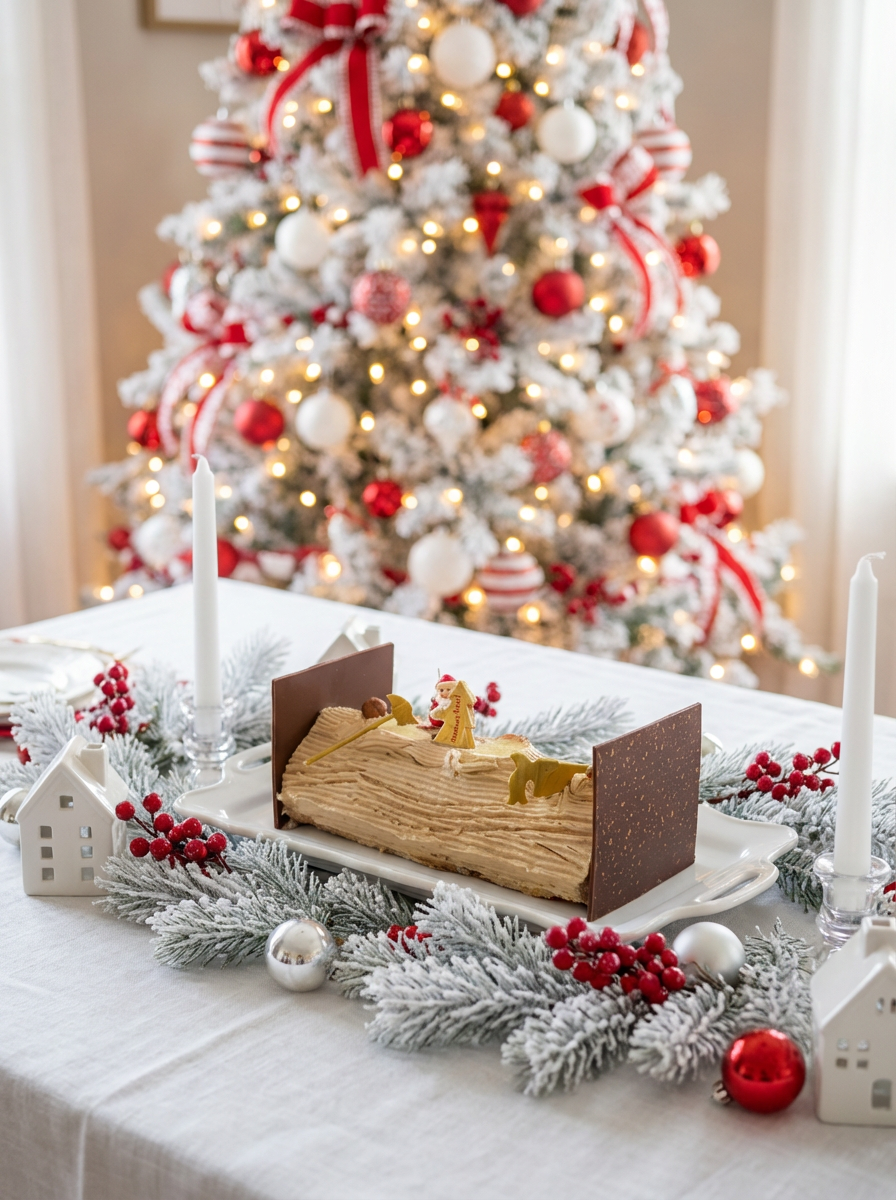 Avec son décor chocolat noir, cette bûche traditionnelle revisite l’esprit de Noël avec une douceur irrésistible et une texture fondante qui plaît à toute la famille.